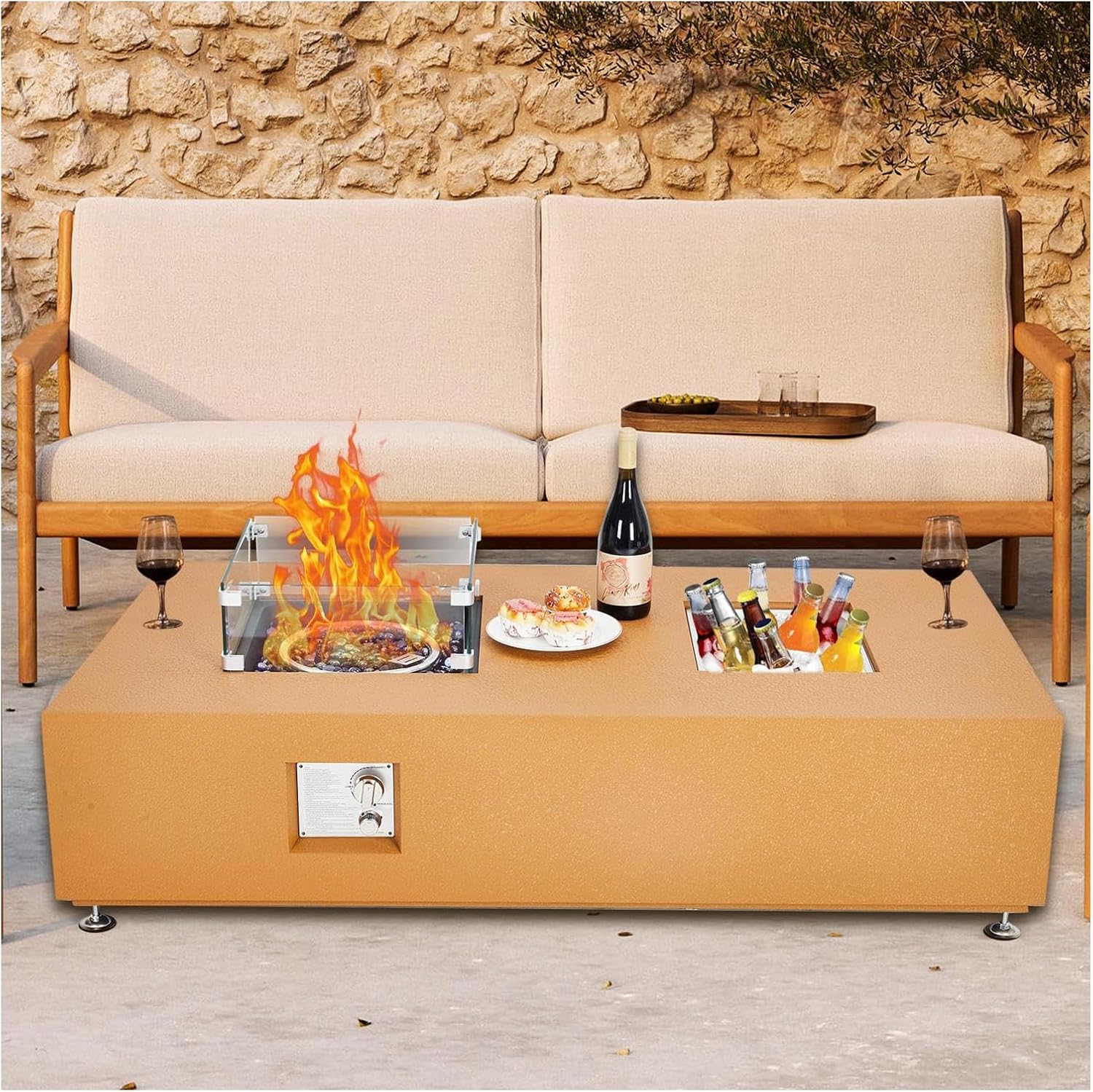 43 Inches Propane Fire Pit Table, 60,000 Btu Rectangular Outdoor Fire Pit with Glass Wind Guard for Patio, Deck, Backyard – Orange & Mustard Yellow (Orange-Yellow) (1 Doors)
