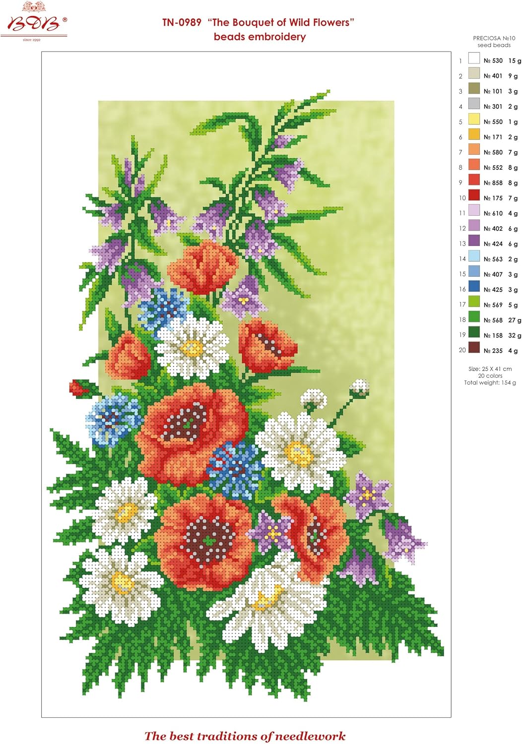 "The Bouquet of Wild Flowers"; Bead Embroidery kit; Beaded Cross Stitch; Contemporary Embroidery; Seed Beads Preciosa; Needlepoint; Handcraft; Tapestry kit; Needle Arts; Christmas Gift; Decor