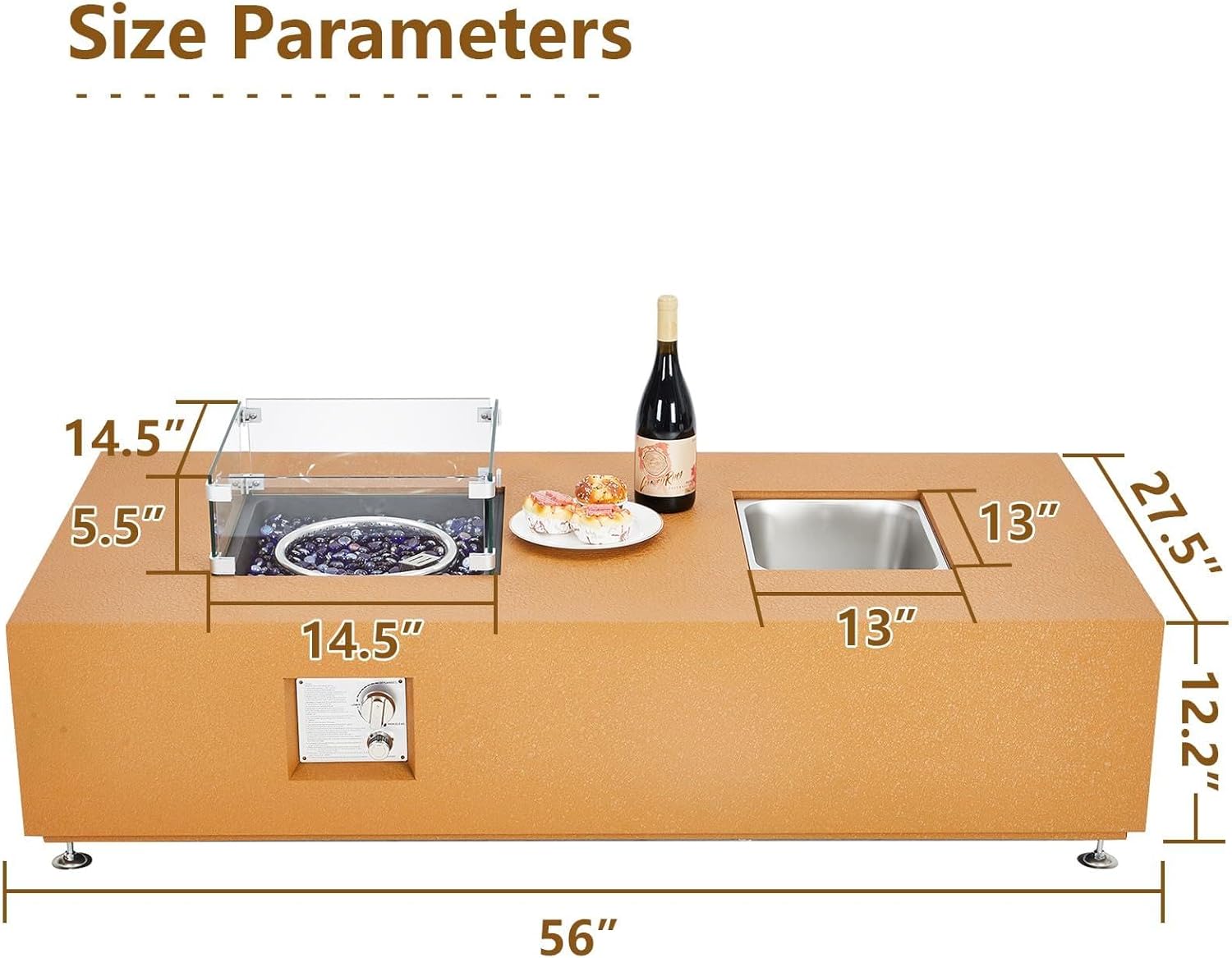 "56" Propane Fire Pit Table with Ice Bucket, Fashion-Forward Design, Dual-Use Functionality, Sturdy Construction, Large Space Economy, Safety Certified"